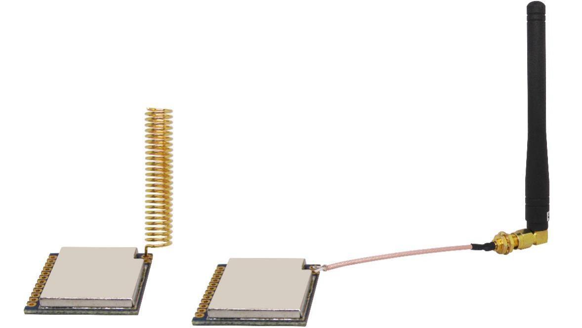 (RF4463PRO模块连接弹簧天线和棒状天线)