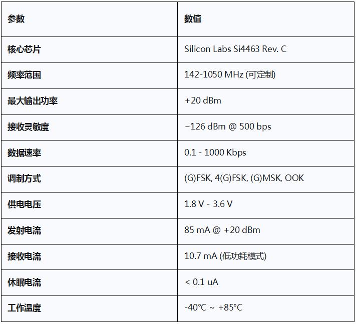 为了直观展示其核心能力,下表汇总了RF4463PRO模块的关键技术规格。