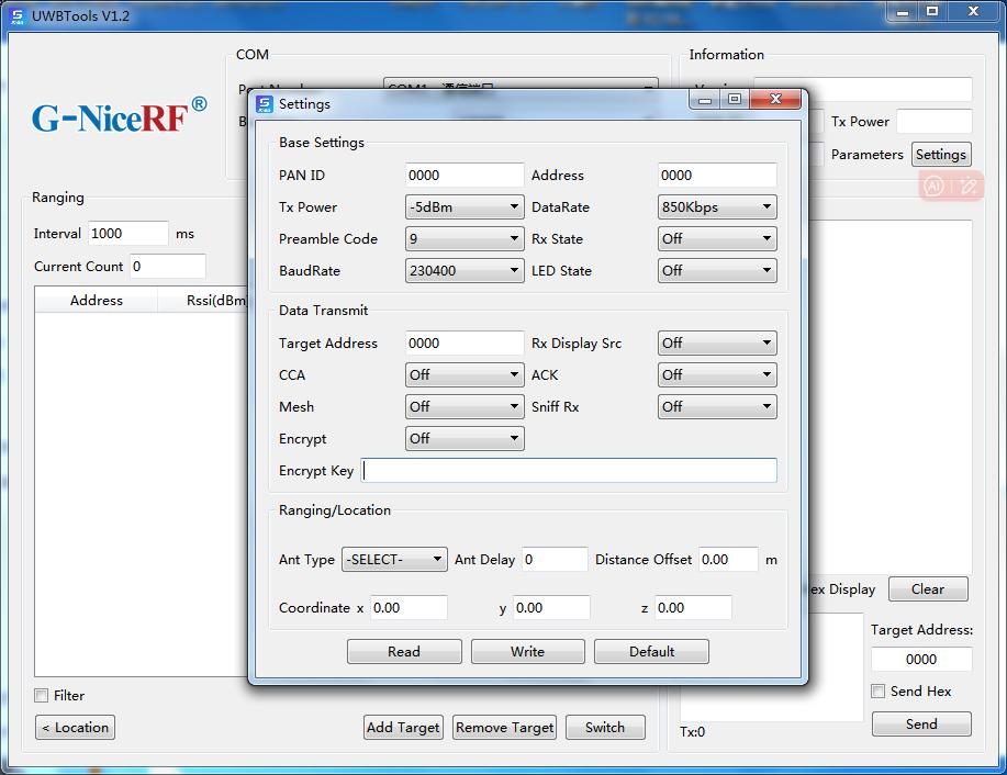 以上UWB650模块指令功能开启也可通过下载我司研发的PC软件直接设置。