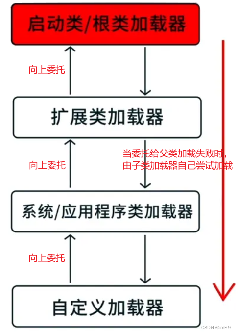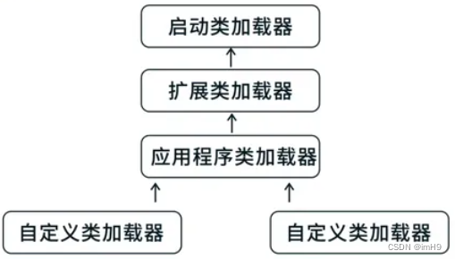 类加载器通常按照父子关系层次结构进行组织,每个类加载器都有一个父加载器(除了根加载器),通过委派机制,当一个类加载器需要加载某个类时,它首先会委派给父加载器尝试加载,只有当父加载器无法加载时,才由该加载器自己尝试加载。