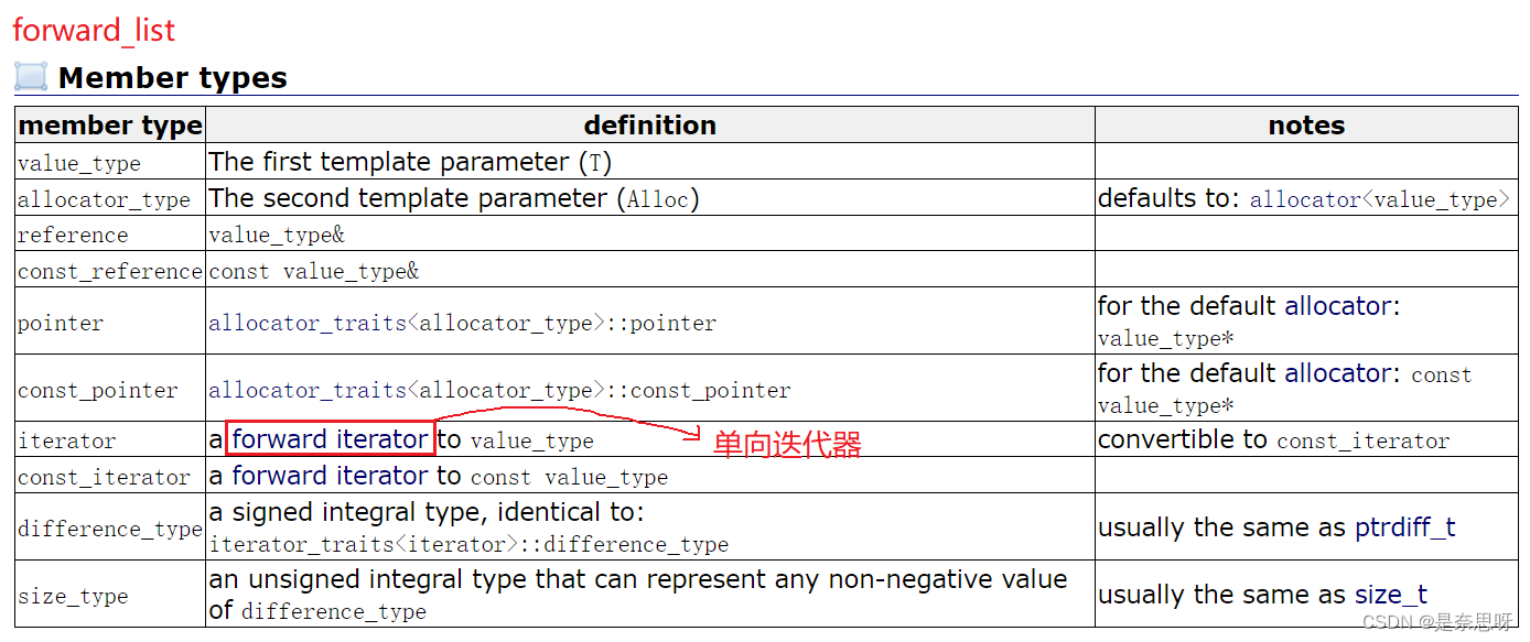 单向迭代器主要是我们的容器 forward_list ,也就是我们的单链表,由于其迭代器只能往一个方向遍历,不能双向访问;