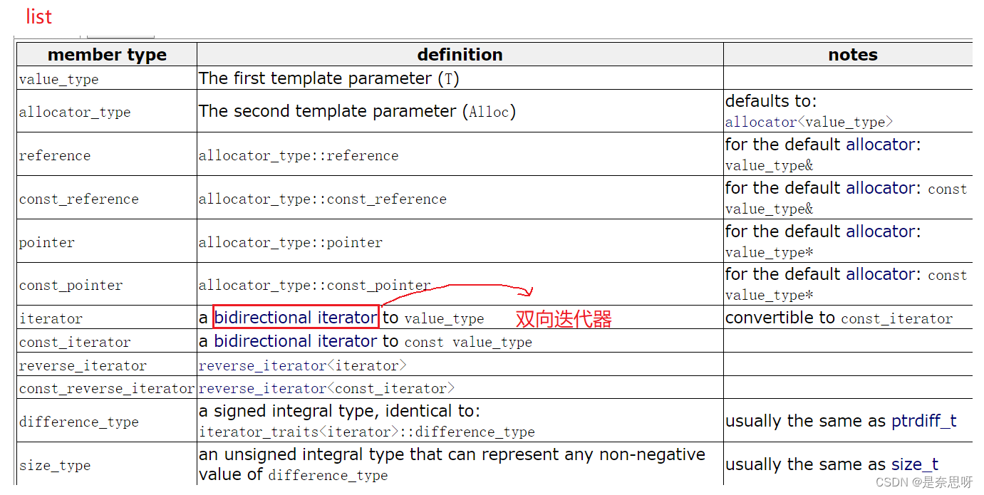 双向迭代器主要就是我们今天学的 list 了,其虽然不是一段连续的内存空间,但我们可以对其进行++或--来依次遍历容器中的每一个数据;