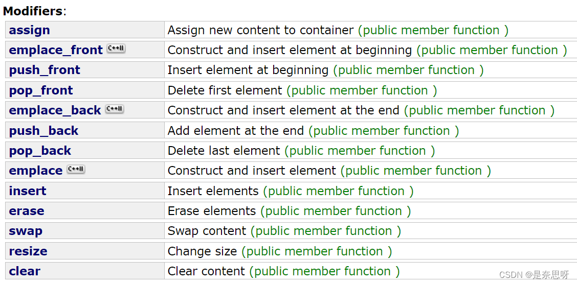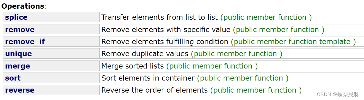在list中还有一些功能性的接口,但是用的并不是很多,也比较特殊,这里可以了解了解;(无需完全记住,用的时候查看文档即可) 文档链接