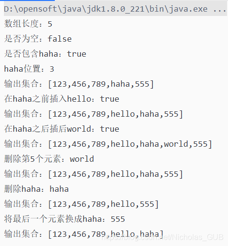 System.out.println("将最后一个元素换成haha:"+list.replace(list.size()-1,"haha"));