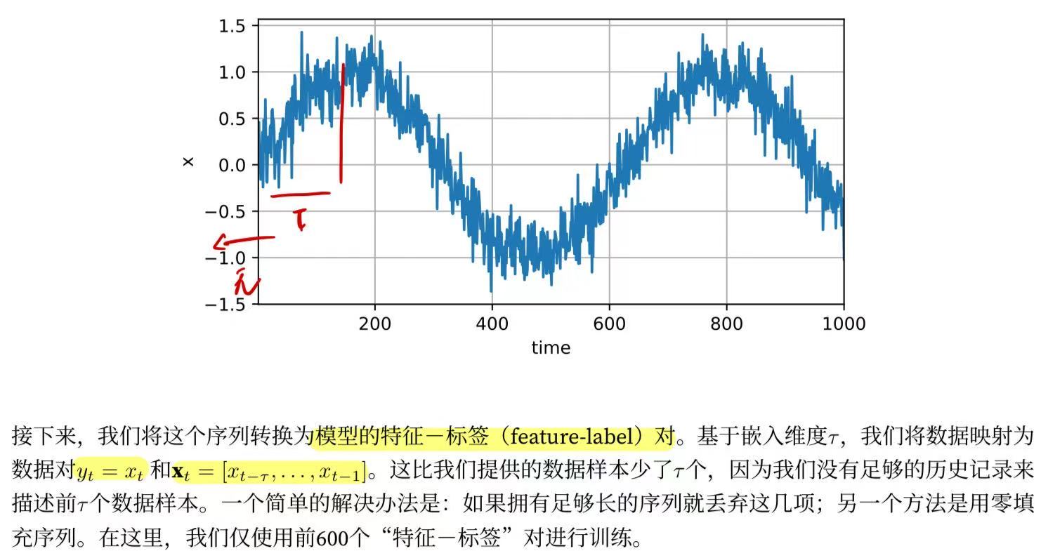 labels = x[tau:].reshape((-1, 1))#构造标签,即每个样本对应的“下一个值”