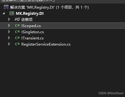 3. 在应用项目中引入类库using MK.Registry.DI; 以IScoped为例;