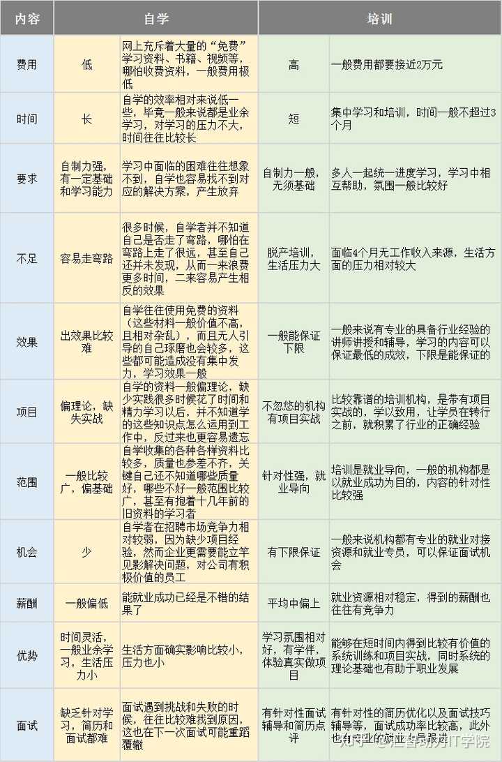 我们知道,任何事物都有两面性,无论选择自学,还是选择培训,都有各有利弊,我们分别进行阐述。