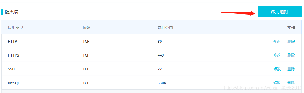- 先到轻量应用服务器左侧导航找到防火墙 里面添加规则把MYSQL规则和端口3306添加