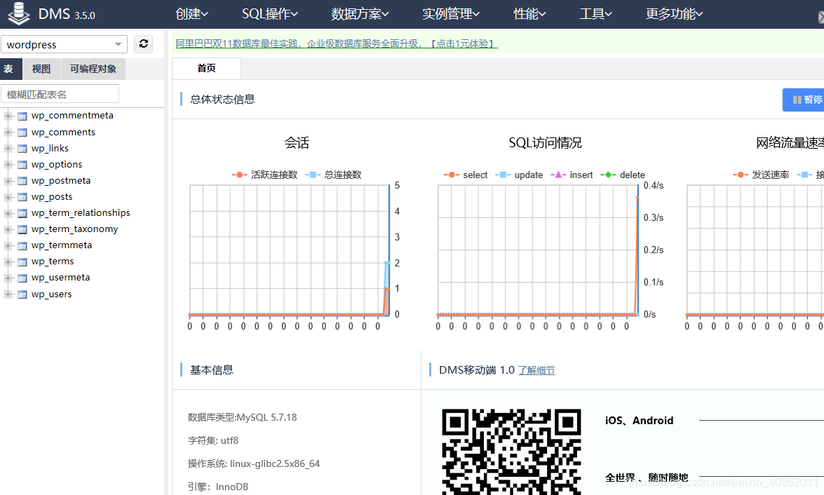 最后回到自建数据库界面输入公网ip,自己设置的数据库密码就可登录,登录后下图即是已经搭建好的数据库,也可看到相关数据库的运行实例,也可以进行数据库相应的操作。