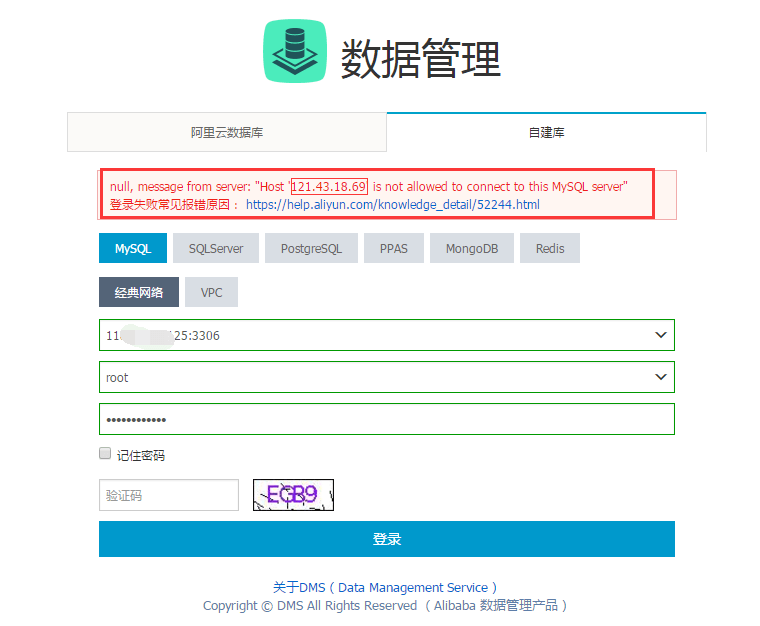 将DMS的服务器IP加入到MySQL的允许连接IP中