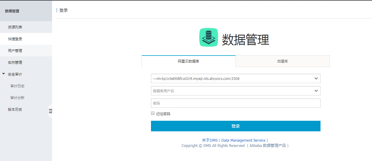 - 进入数据管理DMS 左侧导航 点击自建库(ESC、公网) 开始创建你的数据库(登录数据管理产品(DMS)的控制台,会提示需要授权,按提示说明授权即可。)