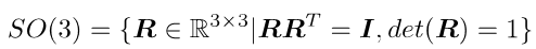 三维旋转矩阵构成了特殊正交群SO(3),而变换矩阵构成了特殊欧氏群SE(3)