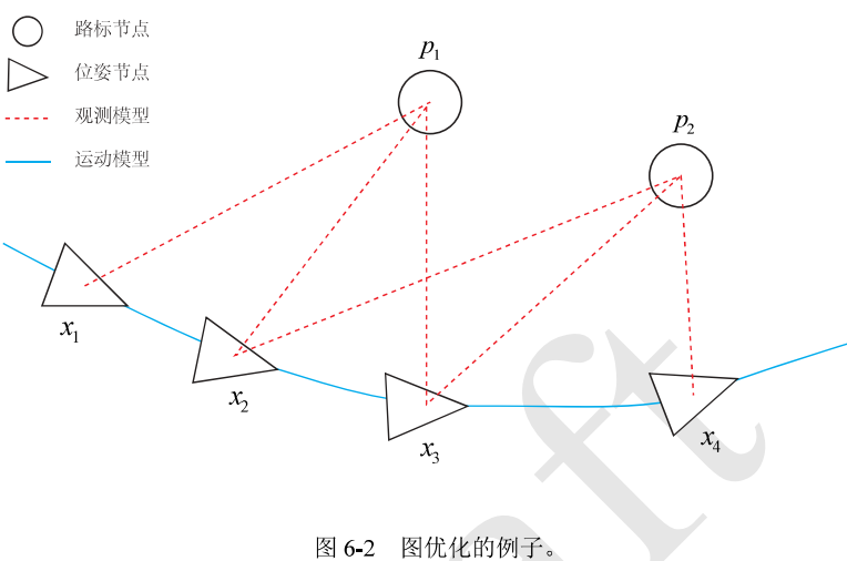 (2)我们可能没有测量运动的装置,所以也可能没有运动方程。在这个情况下,有若干种处理方式:认为确实没有运动方程,或假设相机不动,或假设相机匀速运动。这几种方式都是可行的。在没有运动方程的情况下,整个优化问题就只由许多个观测方程组成。这就非常类似于StM(Structure from Motion)问题,由一组图像恢复运动和结构。与StM中不同的是,SLAM中的图像有时间上的先后顺序,而StM中允许使用完全无关的图像。