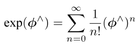 exp(φ^)=exp(θa^)=∑(1/n!(θa^)n)=...=a^a^+I+sinθa^-cosθa^a^=(1-cosθ)a^a^+I+sinθa^=cosθI+(1-cosθ)aaT+sinθa^.