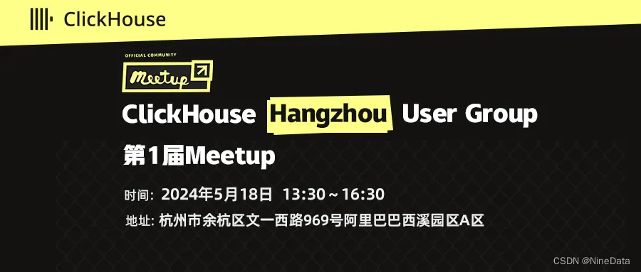2024年 5 月 18 日,ClickHouse官方首届杭州 Meetup 活动即将举行。本次活动由 ClickHouse 和阿里云主办,NineData 和云数据库技术社区协办。本次技术沙龙将围绕ClickHouse的核心技术、应用案例、最佳实践、数据管理、以及迁移同步等方面,和行业专家一起交流探索。