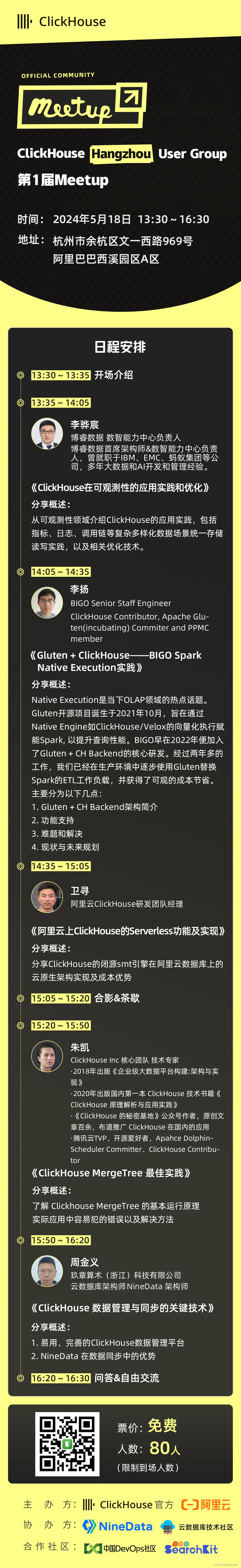 活动报名入口:ClickHouse Hangzhou User Group第1届 Meetup 预约报名-ClickHouse中国活动-活动行