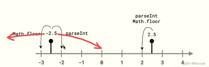 // parseInt() 表示取整,在坐标轴上即向0方向靠拢取整