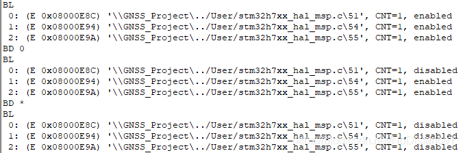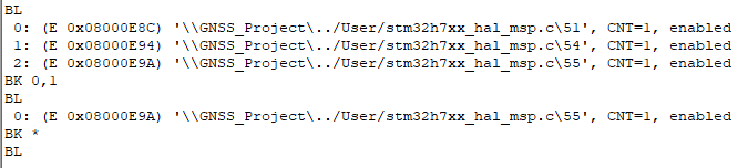 >>BS 0x08000E9A,7,"printf(\"@i=%u\\n\",i)\r\nBD 1"