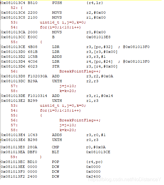 或写出路径所对应的汇编地址:BS 0x08000E9A,7