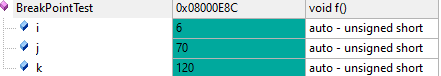 >>BS 0x08000E9A,7,"printf(\"@i=%u\\n\",i)\r\n_break_=1"