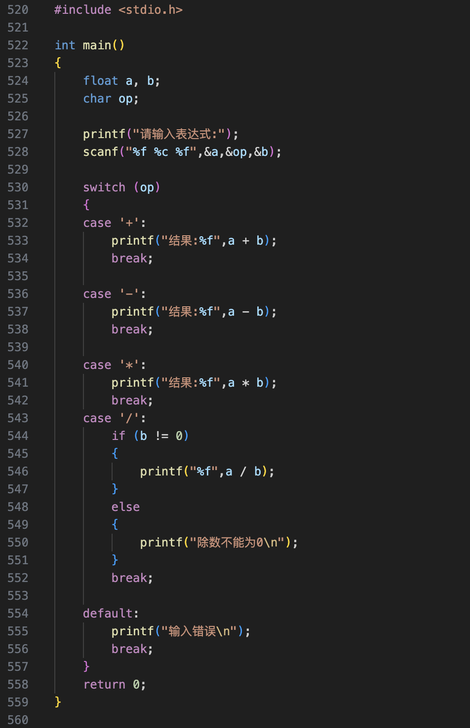 40. 使用 switch 实现简易计算器(+ - * /)。
