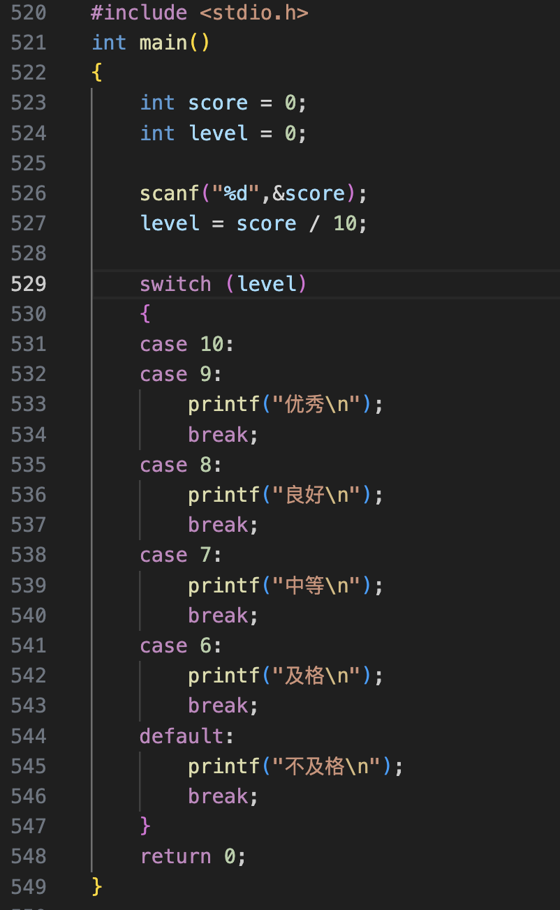 45. 输入考试成绩,输出对应评价(switch实现)。