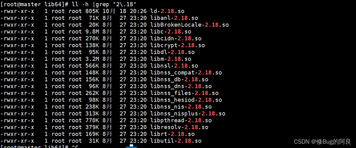 #这是我遇到的需要修改的软连接,根据情况的不同可以先使用ll -h |grep "2\.18"查看需要修改的软连接再自行修改
