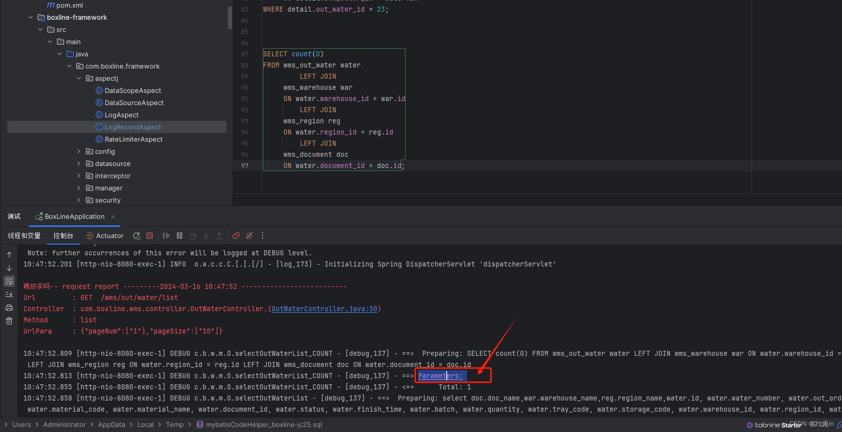 配合mybatis_log 插件,点击Parameters: 可以打开完整sql语句