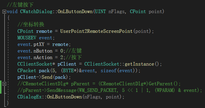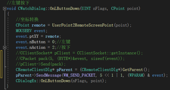 在做一个远程控制项目,进行鼠标控制开发的时候,控制端的鼠标信息发送出现错误