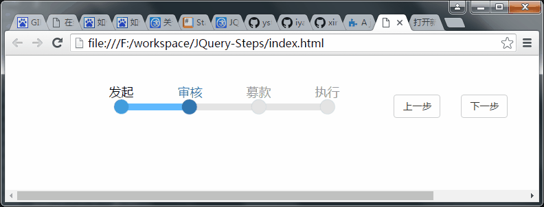 首先,需要引入github中的JS以及CSS等文件,并添加页面元素,使用class="ystep"进行标识。