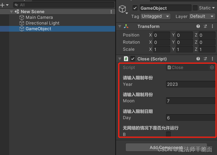 该文章介绍了一种方法,通过在Unity中创建一个脚本来判断设备是否联网,并获取网络时间来限制项目的使用日期。如果超过设定的日期或设备未联网,项目会自动退出。代码示例展示了如何实现这一功能,包括检查网络连接、获取网络时间等步骤。此外,还讨论了可以扩展限制方式,如限制使用次数等。