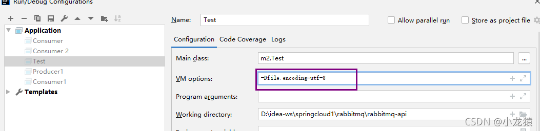 将 -Dfile.encoding=utf-8 这个命令添加到下图所示位置