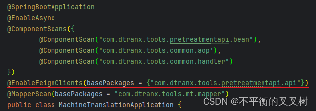 原因:启动类未添加该api的hystrix接口的包扫描。因为@EnableFeignClients注解里添加的包路径只会扫描到@FeignClint注解定义的接口,而扫描不到由@Component 注解定义Hystrix接口。