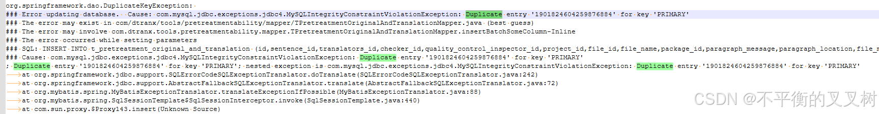 由于主键id是由雪花算法生成,因此初步判断是雪花算法生成了重复id。