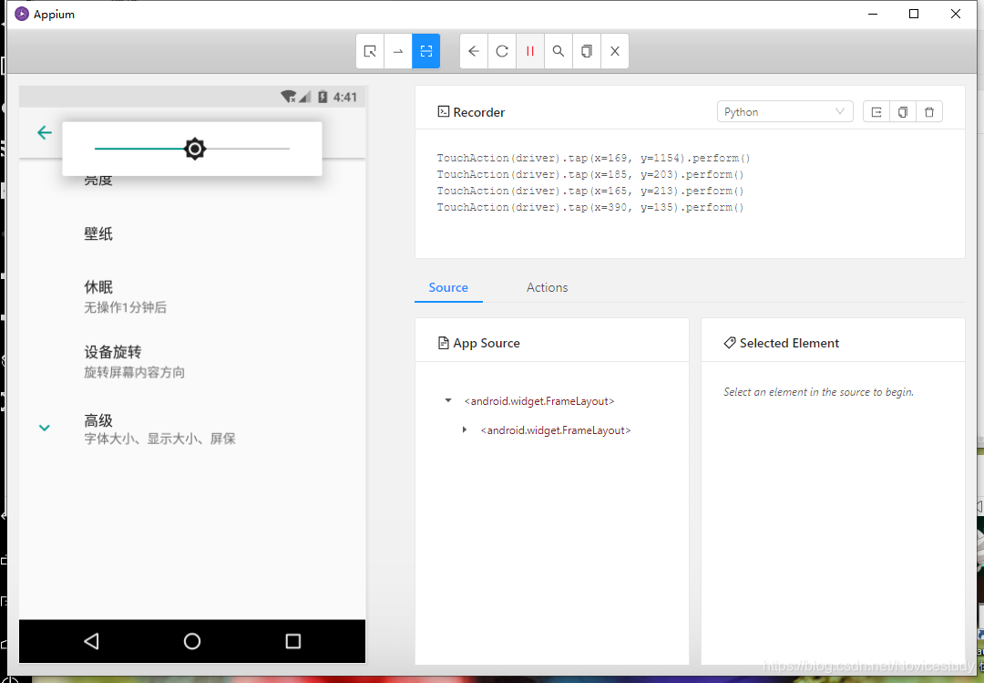 appium按位置录制脚本调节亮度后点击空白位置报错