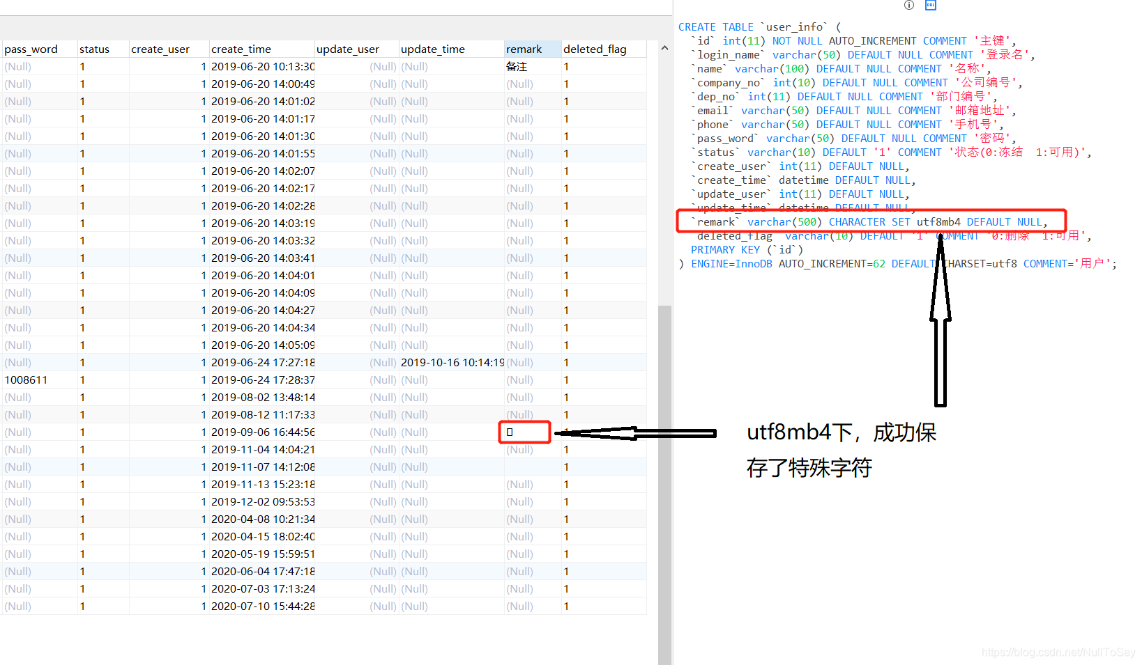 将存储特殊字符的字段的编码修改为utf8mb4,支持存储4字节的数据。