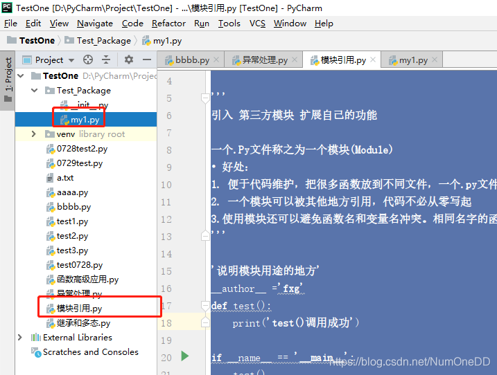 模块引用中有一个引用另一个文件中的对应的方法 所对应的包结构 如下图所示: