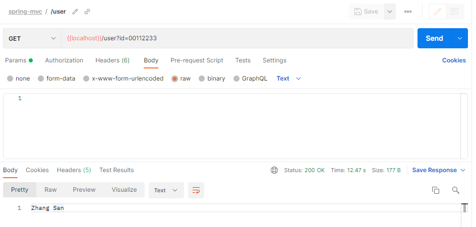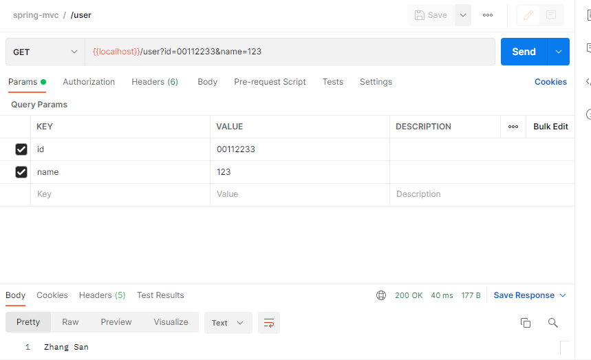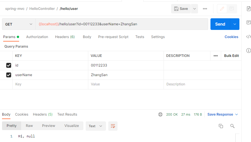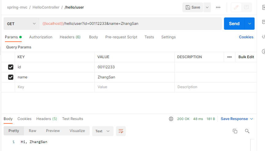 - 查询指定user用户:GET /hello?id=00112233&name=ZhangSan