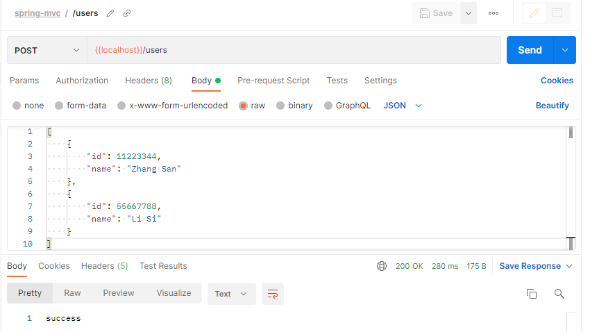 POST /users[ { "id": 11223344, "name": "Zhang San" }, { "id": 55667788, "name": "Li Si" } ] -