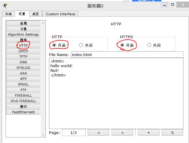Router(config-if)#exit6、对服务器进行设置