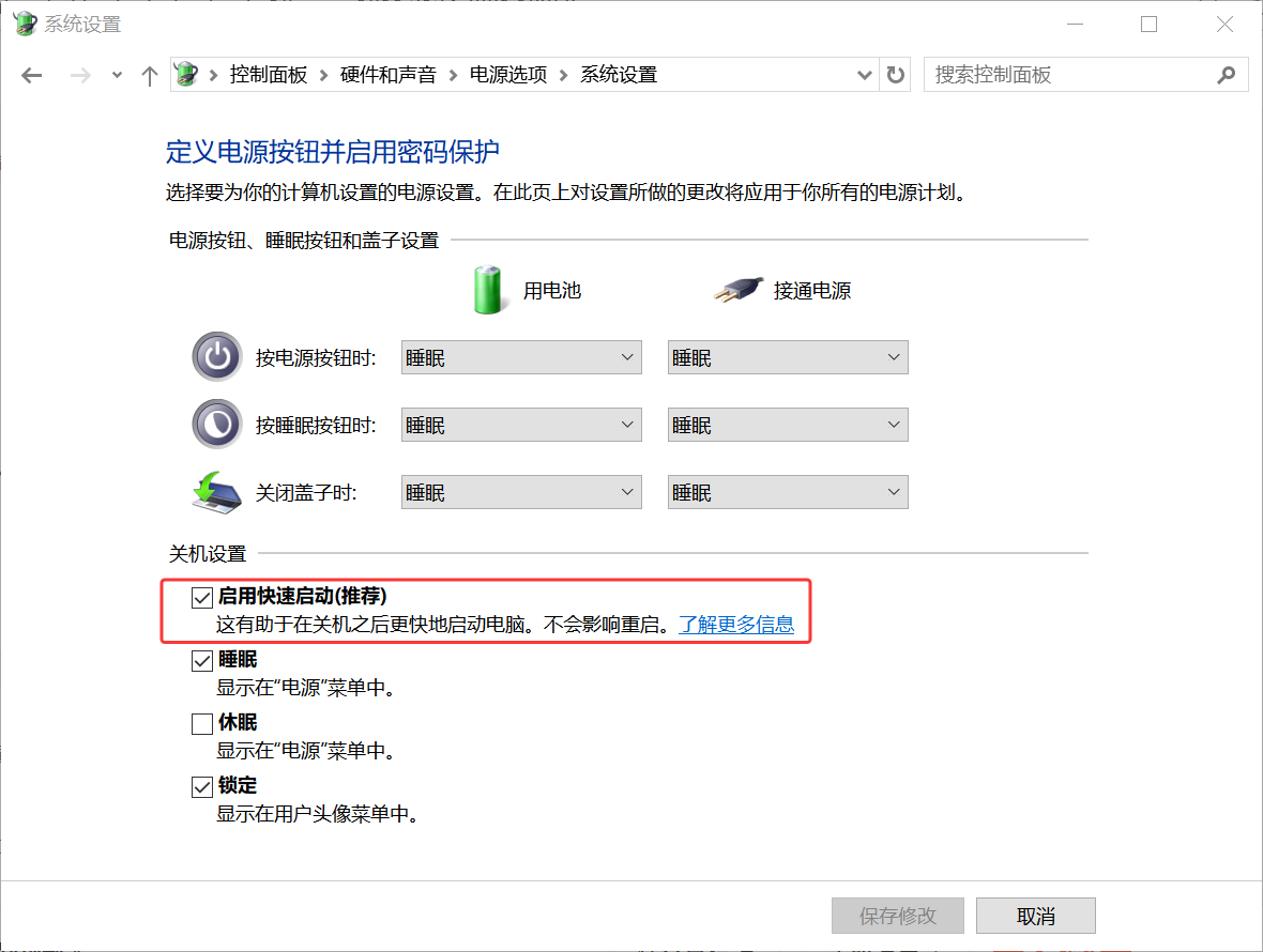取消勾选启用快速启动,然后重启电脑,这次就发现关机的时候一下就关机成功了