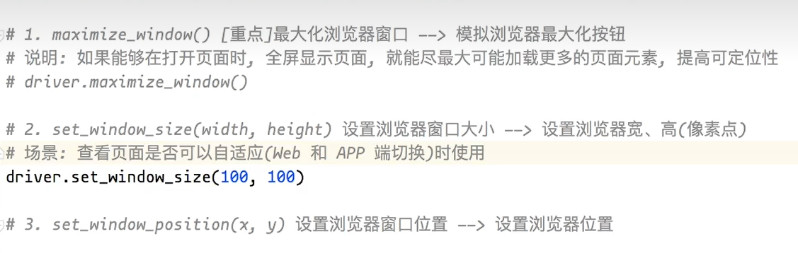 设置浏览器窗口大小-->设置浏览器宽、高(像素点)
