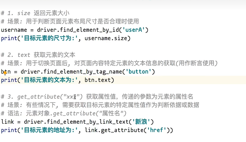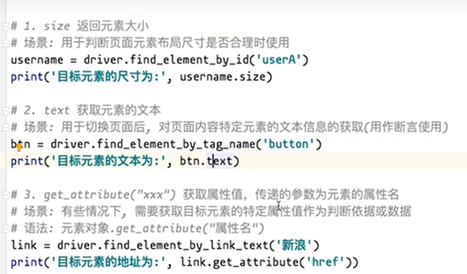 1.size、text:为属性,调用时无括号:如:xxx.size