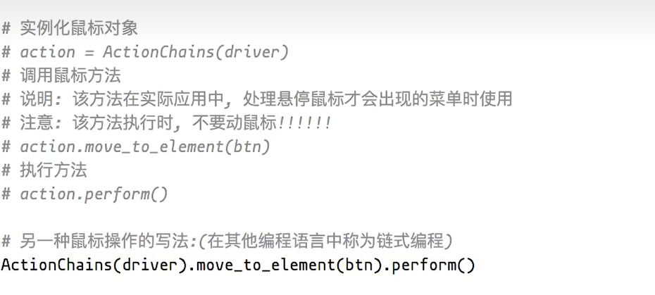 说明:在Selenium中将操作鼠标的方法封装在ActionChains类中