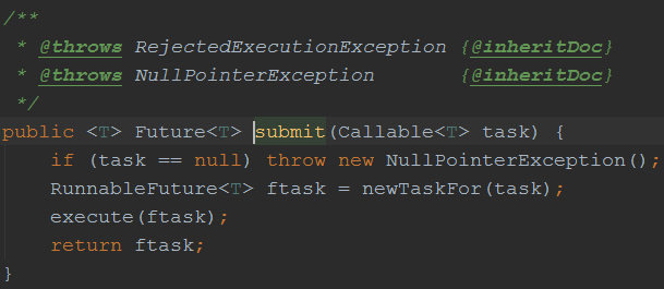 首先从ExecutorService的submit(Callable )方法开始,此方法对应的实现类是ThreadPoolExecutor, 代码如下: