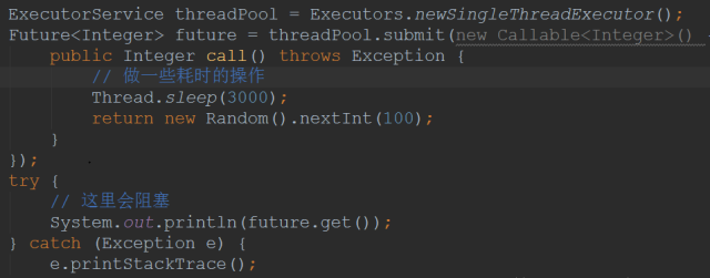 在多线程执行时,对于需要有返回值的场景,常常使用Callable和Future的方式来进行,常见的一种使用方式如下: