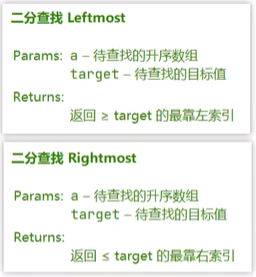 最后总结一下,改动后的 Rightmost,返回值是 i - 1,它代表的是小于等于目标的,最靠右的索引位置,这就是 i - 1 的含义。
