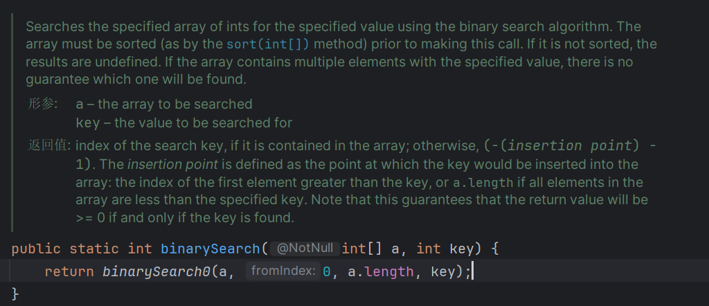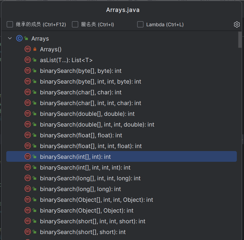 之前我们说过 Rightmost 版本和 Leftmost 版本,其中 Rightmost 版本它是查找与目标相等的最靠左的索引,找不到则返回 -1,Leftmost 版本是查找与目标相等的最靠右的索引,找不到也是返回 -1,各位看到这两个方法在找不到的情况下都返回的是 -1,在往后面学习时,大家都会发现它返回的这个 -1 没什么用,所以我们可以让这个两个方法返回一个比 -1 更有用的值,下面就以 Leftmost 为例来改动这个代码。