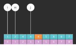 - 计算中间索引 m = (i + j) // 2 注意这里是整除2,也就是舍弃小数点后面部分