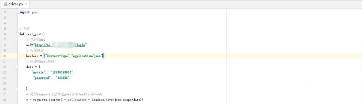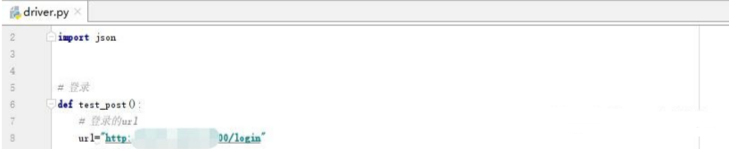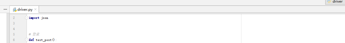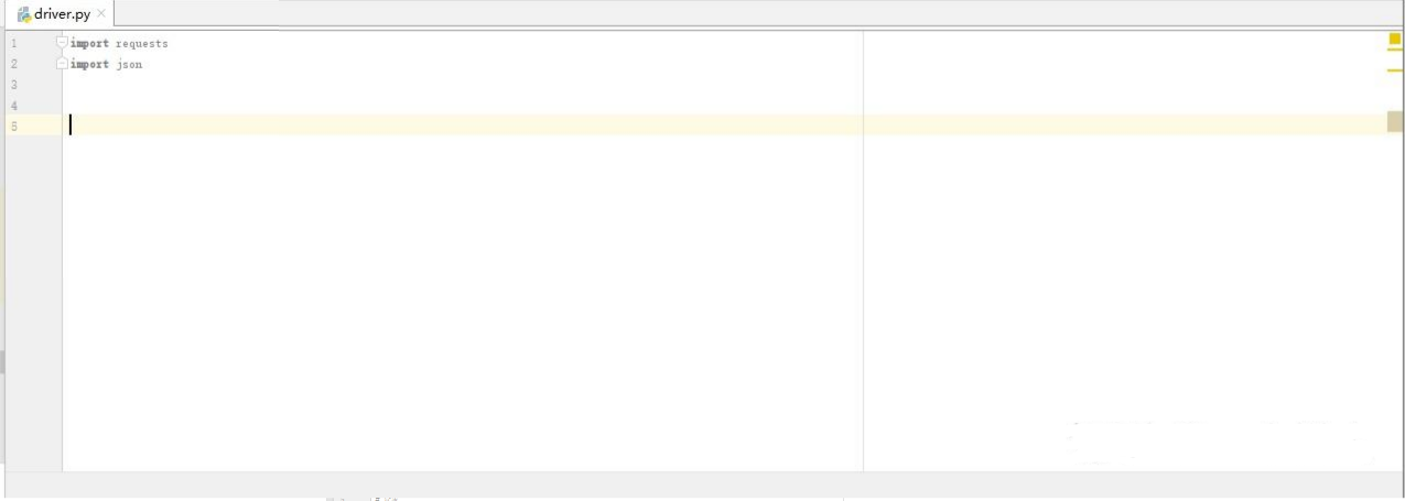 打开pycharm,新建一个drIver.py的脚本,使用import 引用requests和json,一个requests是进行进行接口测试用的,json是因为传递参数的时候,一般使用的是json格式